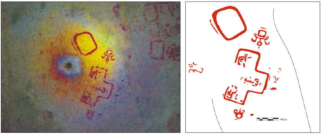 Figura 16 Grabados sobre muro norte. Segunda cámara. Aktun Usil, Maxcanú, Yucatán