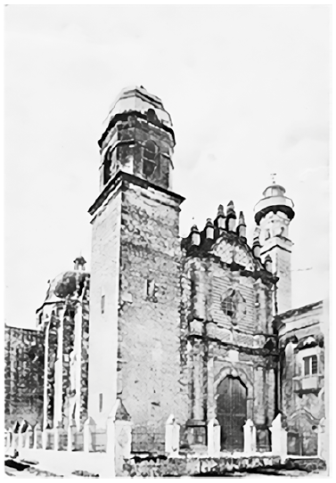 Pérez Martínez, odontólogo de profesión y periodista por vocación -como tantos escritores de la etapa posrevolucionaria sin haber sido formados como profesionales de la Historia, no obstante que en la Universidad de México ya se impartía esa carrera (Gurría, 1978: 27)-, combinó las tareas propiamente historiográficas con el periodismo, la creación literaria, el activismo político y el desempeño burocrático. Afiliado al Partido Nacional Revolucionario, desde que se fundó en 1929, trabajó para el periódico establecido como su órgano oficial, El Nacional, del que llegó a ser jefe de redacción y subdirector, al mismo tiempo que emprendía una vertiginosa carrera política que lo llevó, en 1937, a ocupar una curul como diputado federal y, a partir de 1939, la gubernatura constitucional de su estado natal.3 Entonces, a pesar de las limitaciones presupuestales que enfrentaba (ver Molina, 1990: 105-107), se propuso realizar un ambicioso proyecto, no sólo de desarrollo social sino también de fomento cultural para su entidad.4 Resultados de dicho programa fueron el establecimiento del Archivo Público del Estado, la modernización de la imprenta del gobierno estatal y la fundación del Museo Arqueológico, Etnográfico e Histórico de la Ciudad de Campeche, en ocasión de celebrarse los 400 años de la fundación de la villa del mismo nombre, en 1940. Este recinto abrió sus puertas el 7 de agosto de 1941 y tuvo por sede el edificio del antiguo templo de San José (Figura 1), edificado por la Compañía de Jesús en el siglo XVIII, anexo de su colegio (Lanz, 1901: 5-6).