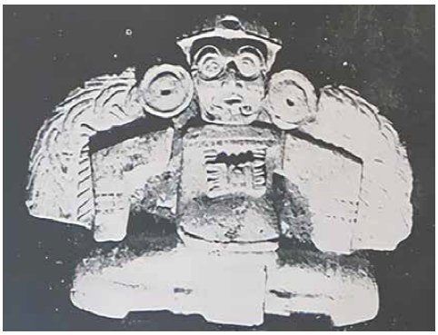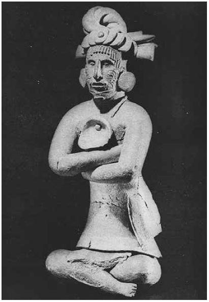 Figura 3 Escultura modelada en barro descubierta durante las excavaciones en Jaina que formó parte del museo de Campeche (Moedano, 1946: 227), y que hoy se conserva en el Museo Nacional de Antropología.