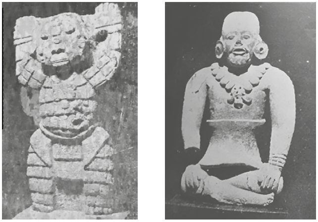 Figuras 6 y 7 Atlante de Xculboc [Xculoc], Calkiní, y Figurilla de Jaina.