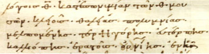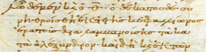 | TRANSCRIPCIÓN DE MARC. GR. Z 450 (A), 33r, col. 1, ll. 24-26 | TRANSCRIPCIÓN DE MARC. GR. Z 451 (Μ), 27v, ll. 26-27 |