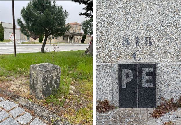 Figura 2 Hito fronterizo número 518, marcado en el camino y en la pared del edificio de la aduana de Vilar Formoso-Fuentes de Oñoro 5