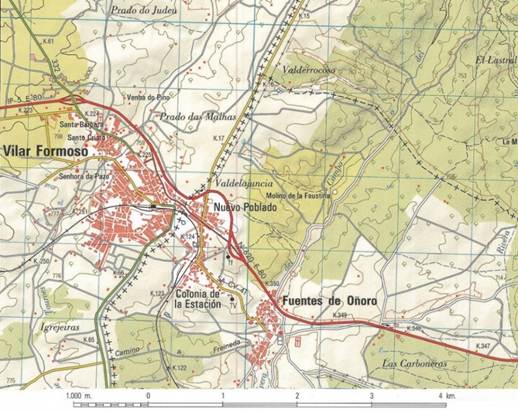 A la publicación de este artículo, el caserío de Vilar Formoso y del Nuevo Poblado de Fuentes de Oñoro llega hasta el límite entre ambas poblaciones y las relaciones de vecindad y el trasiego no encuentran barreras a salvar pues, como se ha señalado, se trata de la Raya seca, sin ríos ni interrupciones al paso de personas a pie o de vehículos (Hortelano Mínguez, 2014), y con una topografía prácticamente llana (véase Figura 4).