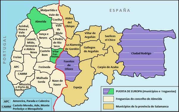 Figura 6 Eurociudad Puerta de Europa. Freguesias del concelho de Almeida y municipios salmantinos próximos a la Raya