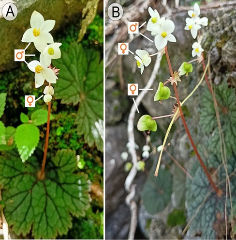Begonia ostulensis Mart. Gord & M.F. Ramos, comúnmente llamada “Begonia de Ostula” o “flor de piedra”, es una herbácea rupícola, endémica del bosque tropical caducifolio de Michoacán, México. Fue encontrada en grietas de roca caliza, en el territorio indígena de Santa María Ostula, entre 604 y 828 m sobre el nivel del mar, con una fenología limitada a la época de lluvias (junio a octubre). A diferencia de la mayoría de especies del género, posee solo una hoja orbicular, en cuyo centro se produce la inflorescencia (Martínez-Gordillo y Ramos-Ordoñez, 2022), una característica atractiva para los interesados en este grupo de plantas (Neale et al., 2006).