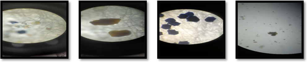 Figura 2 Inspeção visual via microscópio óptico de Microplásticos presentes em alguns produtos analisados.