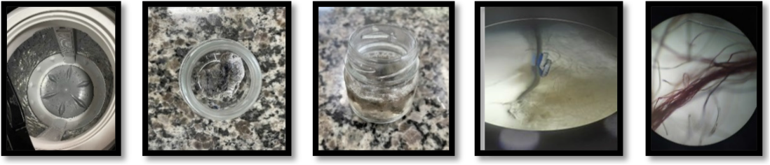 Muitos dos tecidos utilizados na produção de roupas são constituídos de fibras sintéticas que podem ser liberadas durante a lavagem delas. Nesse mesmo processo, os novos modelos de máquinas de lavar apresentam filtros acoplados para retenção dessas fibras, evitando o descarte na rede de esgotos. Nesse sentido, a atividade prática proposta foi realizada através da coleta e análise dos resíduos presentes no filtro de uma máquina de lavar roupas comum após um período de uso.