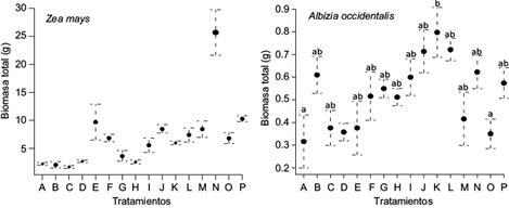| Tratamiento | Zea mays | Albizia occidentalis | ||