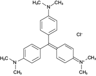 El cristal violeta es un colorante orgánico, sintético y alcalino, de fórmula molecular C25H30N3Cl. Se utiliza principalmente en la industria textil e impresión del papel para dar el color púrpura y distintos tonos de la gama del violeta. Su estructura molecular es plana con tres anillos aromáticos como se muestra en la figura 1, lo cual le atribuye resistencia y estabilidad permitiéndole continuar presente en los ecosistemas por largos periodos de tiempo.
