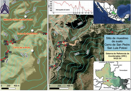 El presente estudio se desarrolló en la localidad del Cerro de San Pedro, San Luis Potosí, México ubicado a una altitud de 2089 msnm con coordenadas de 100º 47’ 49’’ de longitud oeste y 22º12’48’’ de latitud norte (Fig. 1).