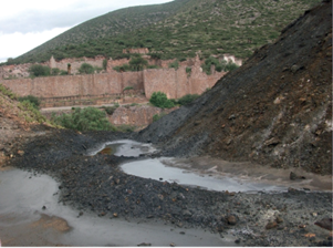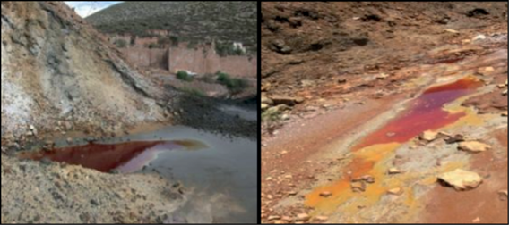 En época de lluvia hay evidencia de drenaje ácido de mina en Cerro de San Pedro tal como se observa en la figura 6, en el sitio de estudio, existe presencia de DAM, sin embargo, es importante señalar que para en este trabajo no se realizaron análisis o pruebas de DAM.