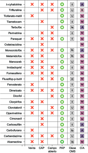 | Plaguicida | E | T | C | CIA |