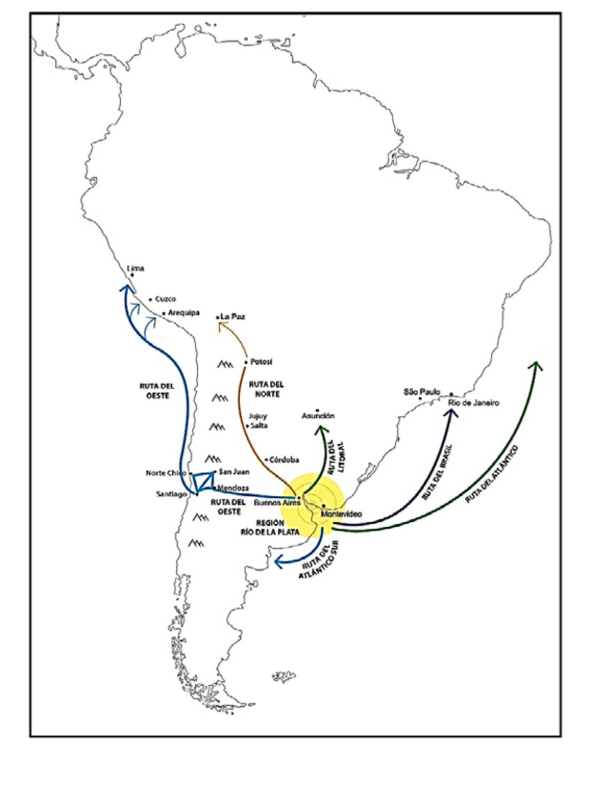 Mapa 2 El circuito mercantil región Río de la Plata-Santiago en el Reino de Chile-Bajo Perú