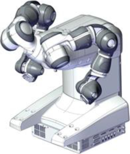 El ABB YuMi IRB 14000 es un robot colaborativo de dos brazos, diseñado específicamente para trabajar de manera segura junto a personas en diferentes entornos. Cada brazo del YuMi tiene 7 grados de libertad, permitiéndole realizar movimientos complejos con alta precisión. Sus brazos están acolchados y su diseño es compacto y ligero, lo que maximiza la seguridad para el personal que se encuentra en contacto directo con el robot [1].