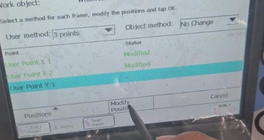 Una vez el robot haya terminado esa función debemos moverlo de forma manual hasta la posición de agarre que deseemos.