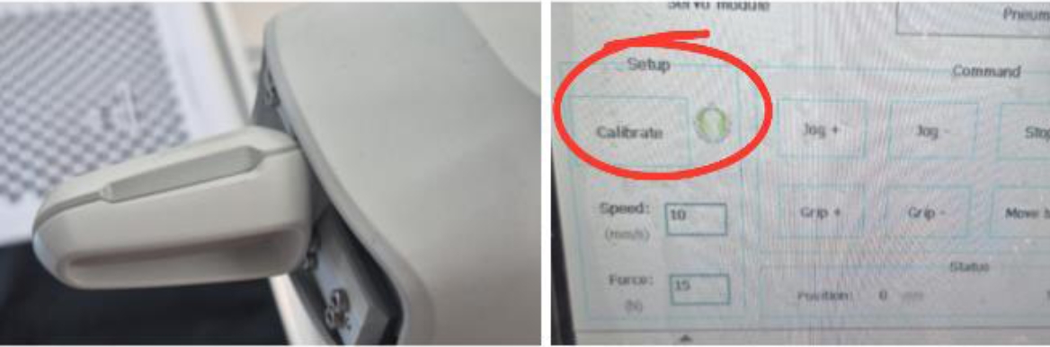 Para la calibración del gripper nos vamos a la pestaña de Smart gripper y configuramos el gripper en posición mínima y realizamos la calibración.