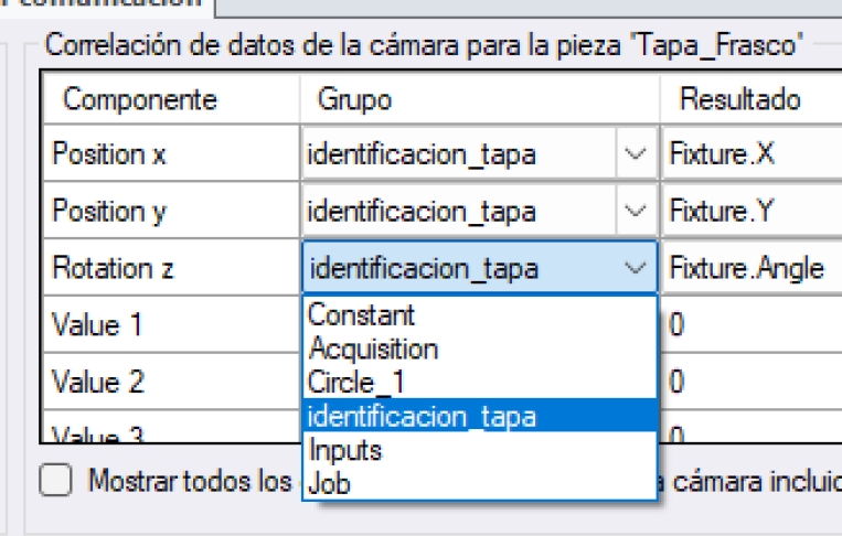 Incluimos dentro de la región de “modelo” nuestro modelo a identificar, en este caso la tapa del frasco. Aceptamos y tendríamos nuestra herramienta de identificación, la cual nos ayudaría a obtener el centro de nuestro objeto a detectar en coordenadas.
