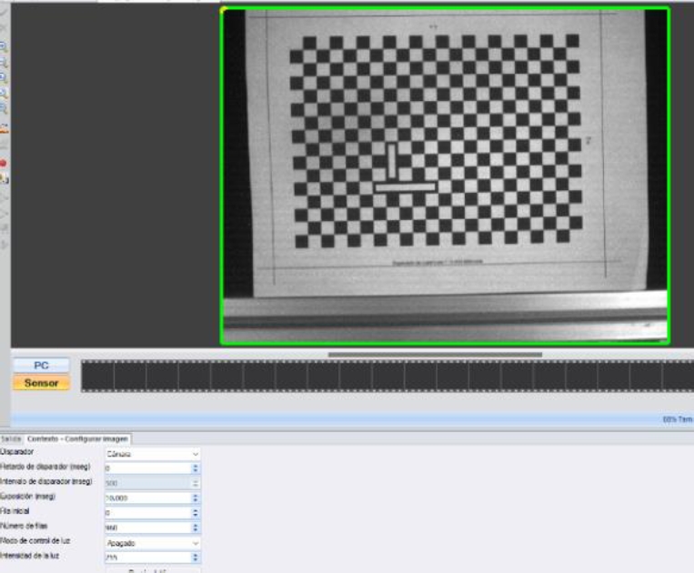 Realizamos la adquisición de la imagen y procedemos a calibrar los parámetros dentro de la interfaz para poder ajustar y obtener una imagen adecuada.