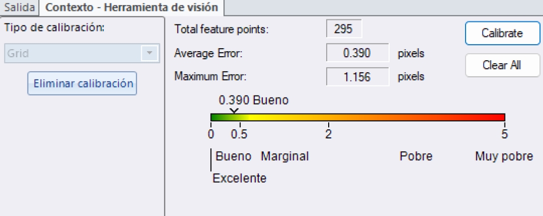 Con esto finaliza la calibración de la cámara respecto al espacio de trabajo.