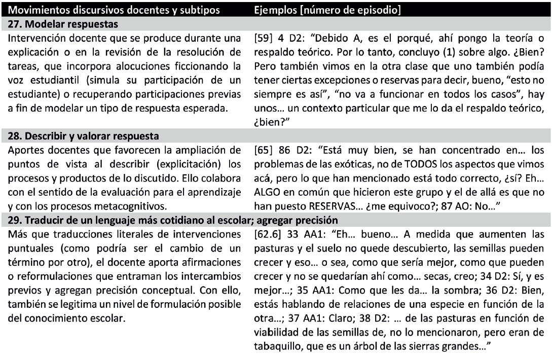 Figura 6 Movimientos discursivos docentes (27 a 29) de la categoría puntos de vista/dialogicidad