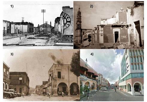 Aunado a lo anterior, tuvo lugar una renovación urbana interior que tomó como modelo la experiencia suscitada en la capital del país, en cuanto a rectificaciones, ensanches y aperturas de vialidades, así como la construcción de edificios con expresiones arquitectónicas y escalas que contrastan con los prexistentes. Esto no se pudo haber logrado sin la destrucción del patrimonio urbano arquitectónico en importantes cantidades (fotografía 1).