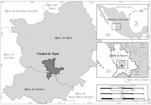 Figura 1 Ubicación geográfica de la ciudad de Tepic, Nayarit, México