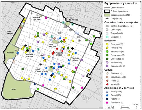 Figura 11 Dotación de equipamientos y servicios públicos en el centro histórico de Tepic