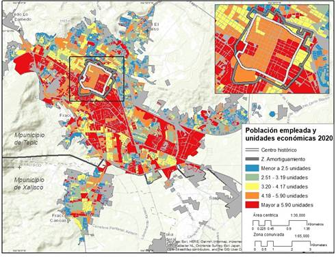 Figura 9 Población empleada y unidades económicas a nivel de manzanas urbanas