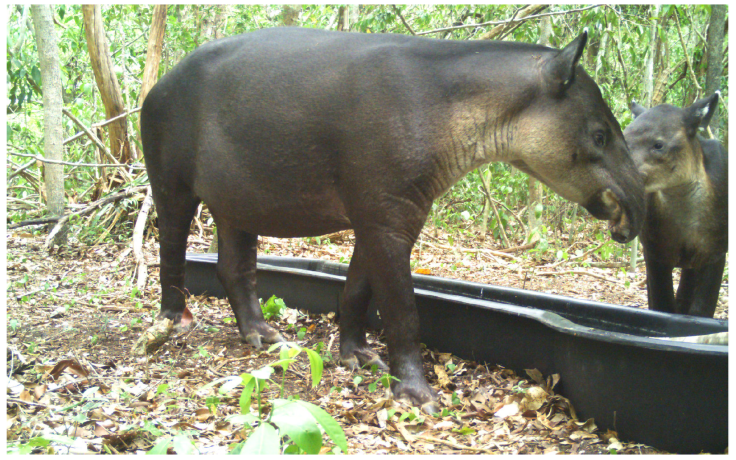 Artificial water troughs could play a key role in mitigating the negative effects of drought on tapirs in the Maya Forest, as they complement the functions of natural water bodies such as “aguadas” and “sartenejas”. However, further research is needed to understand and rule out possible negative effects on tapir populations, as it has been suggested that being artificial structures arbitrarily introduced into a natural system, could lead to alterations in the behavior, ecology, and health of tapirs (i.e., they could act as a focus of zoonosis).