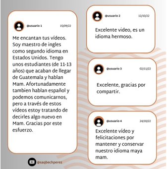 Figura 1 Comentarios de apoyo en el canal de YouTube de Saqb’ech Pérez