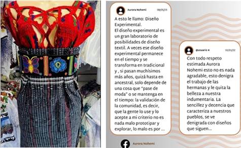 Sin embargo, la respuesta de varios seguidores fue de descontento porque consideraron que el diseño «denigra» el trabajo de las tejedoras y la sabiduría de las abuelas y porque parecería seguir la «moda ladina que enseña el cuerpo». Otros comentarios sugerían que el diseño trasgrede el conservadurismo que históricamente se ha inculcado a las mujeres mayas. Aurora Nohemí respondió a las críticas señalando que las culturas están en constante evolución y que, para las juventudes indígenas, el desafío radica en impulsar innovaciones en el marco de aspectos esenciales de su identidad sin que estas sean rechazadas por las generaciones mayores: