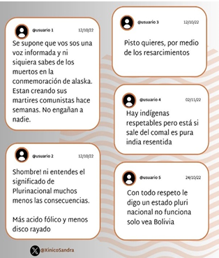 Figura 4 Publicación en X, 2023, con comentarios contra Sandra Xinico