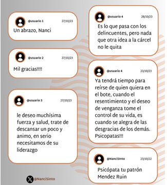 Figura 5 Comentarios y reacciones en el perfil de X de Nanci Sinto, 2023