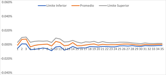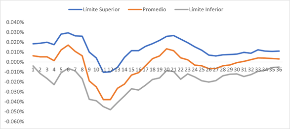 Figura 3 Respuesta de la inflación en Puerto Rico a un aumento inesperado de un punto porcentual en la tasa de interés de los bonos del Tesoro a un año de maduración