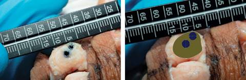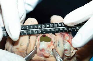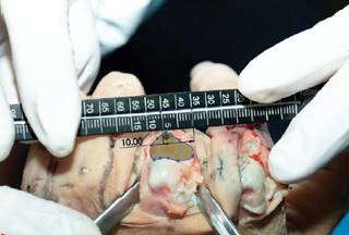 Las fotografías de disección se tomaron bajo ciertas direcciones: disparos frontales a la cabeza del tornillo junto con un instrumento de medición colocado en el mismo plano de la cabeza del tornillo como referencia. El registro de dedo y modelo cadavérico se registró en el mismo orden.