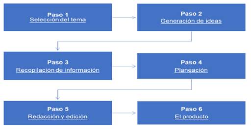 Finalmente se crea el producto (proyecto) que puede ser un reporte escrito, una presentación oral, un video o un audio, por mencionar algunos ejemplos.