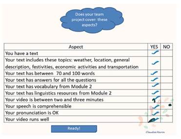Finalmente, la figura 5 muestra los criterios que sirvieron de guía para que los estudiantes identificaran, antes de crear el producto (proyecto), si este cumplía con los requerimientos solicitados. De no ser así, podrían editarlo o hacerlo nuevamente.