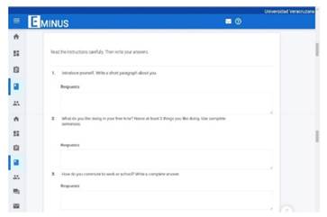 El examen final constó de 40 ítems distribuidos en cuatro secciones. La primera sección evaluó comprensión lectora, las siguientes dos, expresión escrita y la última, comprensión auditiva. Dos secciones fueron de opción múltiple, una de completar con una palabra o frase y una de espacios en blanco. La figura 7 presenta un extracto de la sección de expresión escrita.