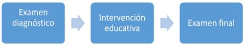 Al concluir la intervención educativa, los estudiantes realizaron el examen final. Al igual que el examen diagnóstico, solo podía ser contestado una vez y tenía tiempo limitado para evitar que revisaran los contenidos del curso o cualquier otro material de apoyo. La figura 8 esquematiza de manera resumida el proceso que se siguió para la recolección de datos.