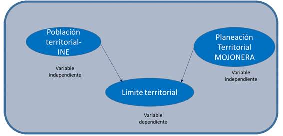 En este sentido el límite territorial, está condicionado por las variables independientes: Población territorial (cartografía), según el padrón del INE y la Planeación territorial a través de la identificación de Mojoneras (Normatividad).