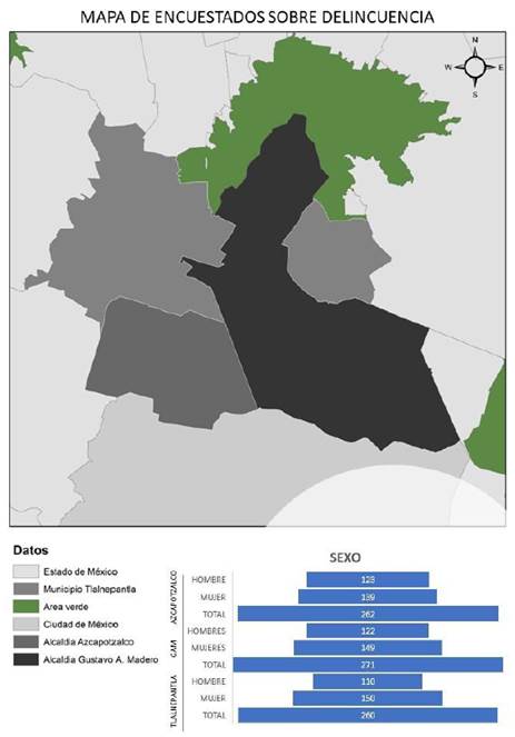 Figura 11 Mapa de encuestados sobre delincuencia.