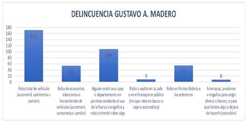 Otro aspecto observado por la falta de control, fue la delincuencia y considerando lo manifestado por la Fiscalía Nacional de Seguridad Pública, en la Encuesta Nacional de Seguridad Pública Urbana [Ensu], (2020) , se descargó el archivo para poder hacer el análisis de delincuencia de las alcaldías Azcapotzalco, Gustavo A. Madero y el municipio de Tlalnepantla:
