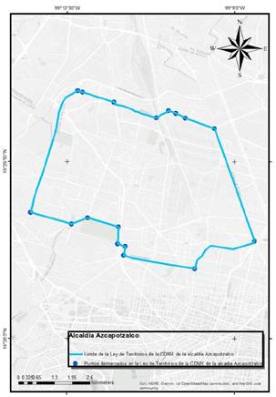 Figura 5 Mapa de la alcaldía Azcapotzalco señalando la delimitación de la Ley del Territorio de la CDMX.