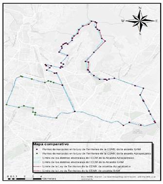 Figura 6 Mapa comparativo de los límites demarcados en la Ley del Territorio de la CDMX y el IECDMX.