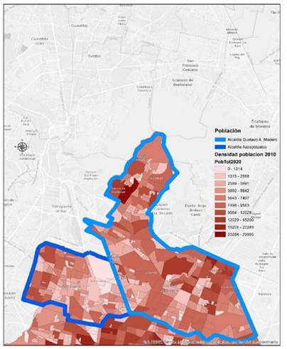 Como se señaló al inicio, el crecimiento de la población aunado a una falta de seguimiento en la planeación urbana y territorial, ha sido una condicionante que ha impactado directamente en las condiciones de vida de la población estudiada. Para visualizar el impacto se presenta el análisis de los datos obtenidos de diversas fuentes oficiales. Según INEGI, hubo un aumento de población en la última década, la cual se puede observar en la siguiente tabla (3) y visualmente en la figura 7 de población, donde se detecta la mancha de población en la periferia de las alcaldías Azcapotzalco y Gustavo A. Madero con colindancia con el Estado de México, municipio de Tlalnepantla.