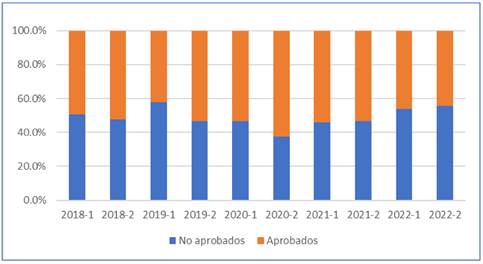 Figura 1 Porcentaje de aprobación-reprobación semestral en los cursos de métodos numéricos