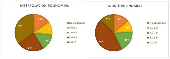 Posteriormente, para evaluar los resultados del sistema de prácticas en conjunto se consideró el desempeño del estudiante mediante su calificación al final de la unidad temática, dividida en dos bloques: polinomios de interpolación y ajuste polinomial. En tal sentido, se sugiere que el uso del sistema de prácticas del EOS implementado en Moodle como ruta tecnopedagógica generó resultados satisfactorios.
