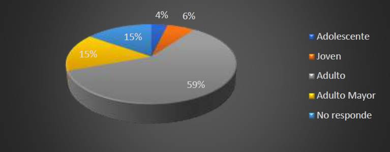 En este apartado se muestra los resultados datos obtenidos del cuestionario aplicado a los caficultores de la región centro del departamento del Cauca. A continuación, se presentan los resultados obtenidos derivados del cuestionario aplicado a los caficultores del centro de departamento del Cauca conformada por los municipios de: Piendamo, Popayán, Tambo, Silvia, Cajibío, Timbío, Rosas, Sotará, Morales, Páez Cauca y La Sierra. El 59% de los encuestados son adultos, el 31% son adulto mayor y la mitad de este porcentaje prefieren no decir el rango de edad. No obstante, el 6% son jóvenes y el 4% son adolescentes.