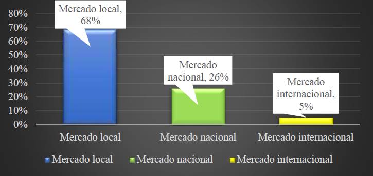 Con relación frente a los mercados y los medios que utilizan los caficultores para promocionar sus cafés especiales en el mercado local, se tiene que por medio de redes sociales el 68% de los caficultores lo hacen en el mercado local, posteriormente el 11% lo realiza en el ámbito del mercado nacional y tan solo el 5% lo hace focalizado en el mercado internacional. Por otra parte, a través de medios como la radio o periódico, el 11% de los productores lo promociona en el mercado nacional y en televisión solo el 5% lo promociona en el mercado a nivel nacional. Adicionalmente se evidenció que para el mercado a nivel internacional no se promociona el café especial, en los medios de radio o periódico, ni tampoco en televisión.
