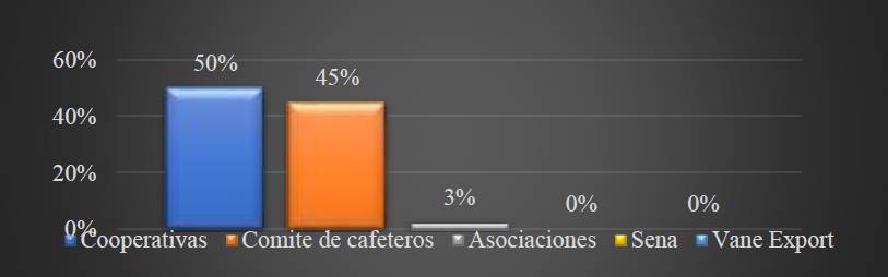 En concordancia con las encuestas desarrolladas, con relación a la pregunta sobre si los caficultores han recibido capacitaciones para la producción de cafés especiales. Se determinó que el 98% de los caficultores encuestados han recibido capacitaciones, de esos el 50% han participado en programas de capacitaciones con cooperativas, mientras que el 45% han participado en capacitaciones del comité de cafeteros y por último, el 3% de los caficultores han recibido capacitaciones hechas por las asociaciones de cafeteros de la región. Mientras que el 2% no han recibido ninguna capacitación por ninguna entidad.